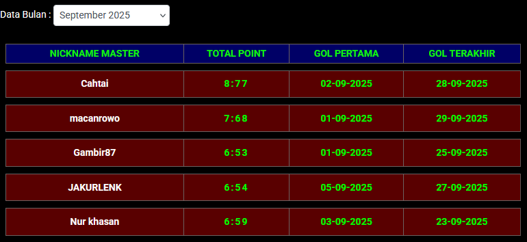 | 6 | Balmon77 | 6:60 | 05-10-2025 | 25-10-2025 |