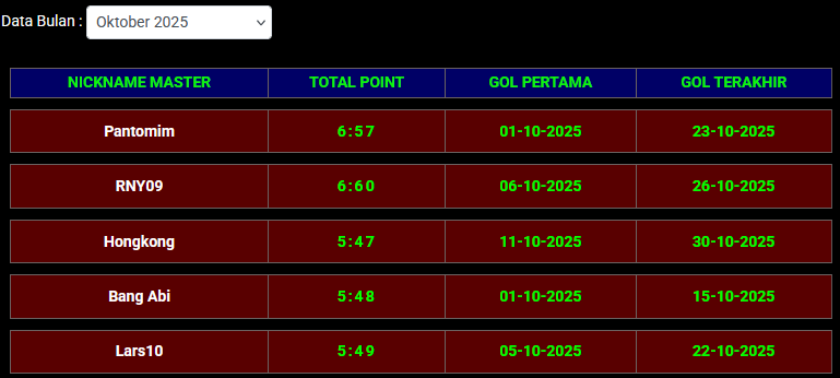 | 42 | setiadi22 | 3:30 | 02-10-2025 | 16-10-2025 |