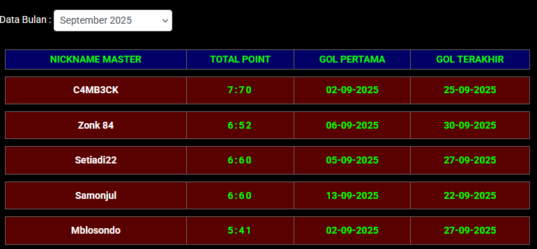 | 8 | setiadi22 | 6:60 | 02-10-2025 | 29-10-2025 |