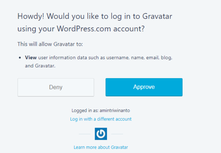 jika anda sudah klik Approved diatas otomatis anda mengijinkan Gravatar buat mengakses Wordpress anda