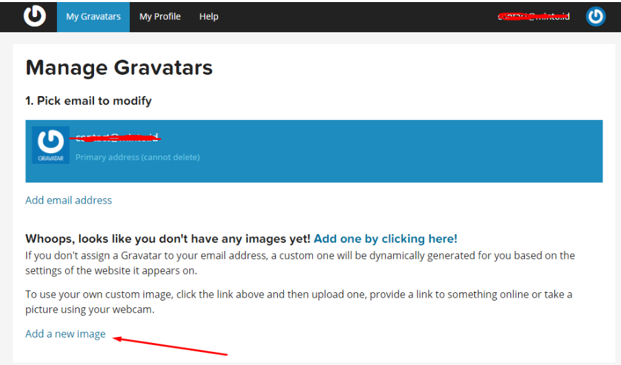 4.Menambah photo Gravatar Pada bagian my gravatar silahkan anda menambahkan gambar grafatar dan beberapa email tambahan klik add new Image buat memulai menambahkan gambar yang ada senangi dan sukai.