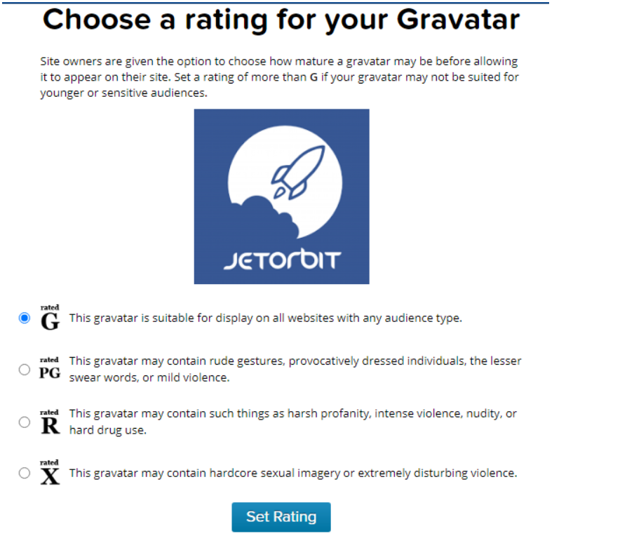 Untuk website umum kami menyarankan memilih no.1 atau G rated saja Setelah Selesai membuat Akun Gravatar kita dapat menggunakan pada website wordpress dan Website lainya, Perlu diingat Gambat Gravatar akan tampil jika Wordpress yang anda kunjungi terintegrasi dengan Gravatar ....... Semoga tata cara buat Gravatar yang kami berikan dapat bermanfaat buat sobat-sobat semua yang membutuhkan Gambar Gravatar. selamat mencoba ...